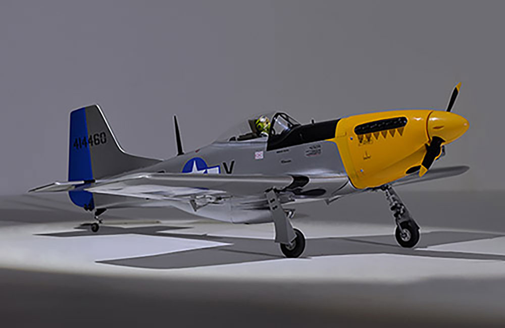 Created with the scale enthusiast in mind, this almost-ready-to-fly airplane replicates the scale outline of its full-scale counterpart with accuracy. the Mustang P51 is packed with scale details. Including Retractable landing gear and all the hardware are included.